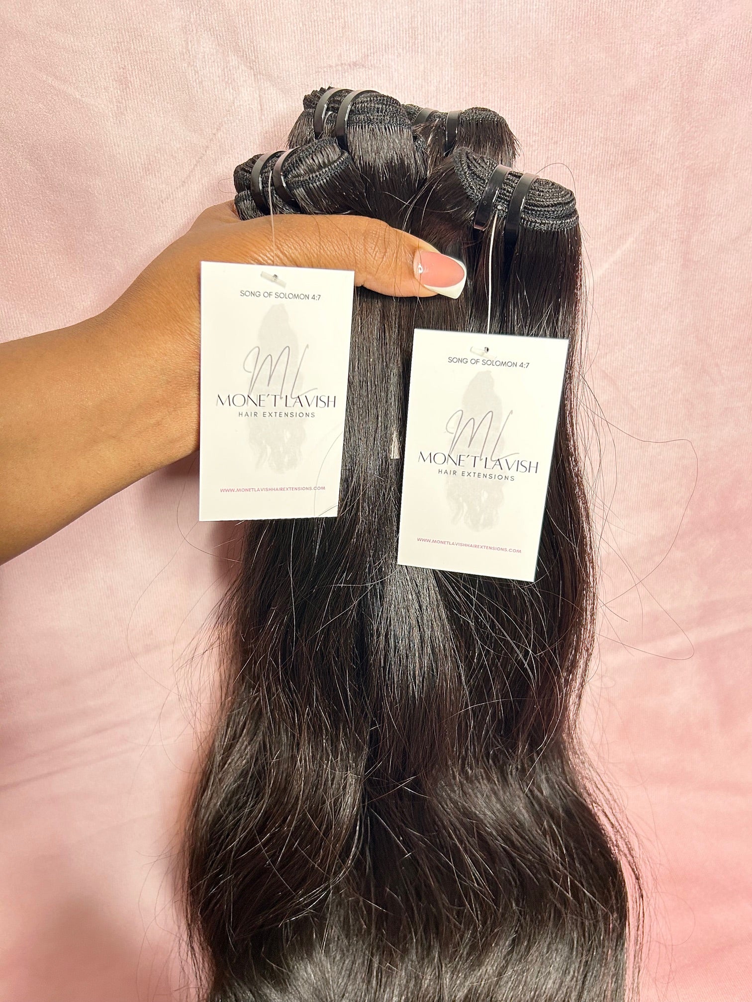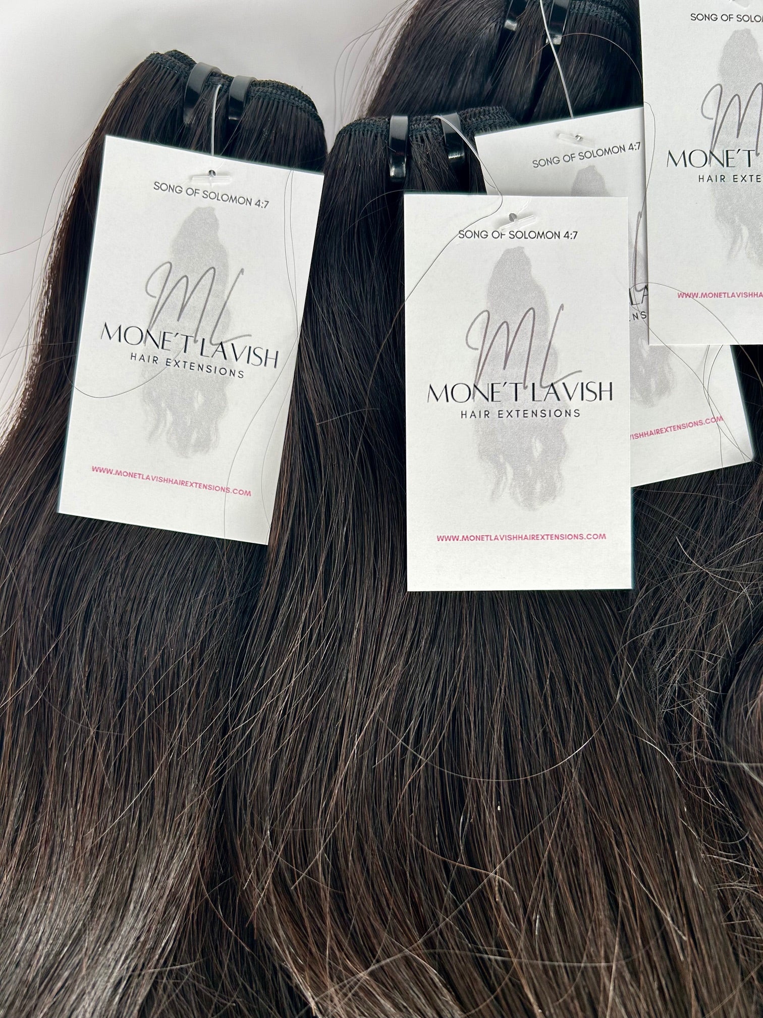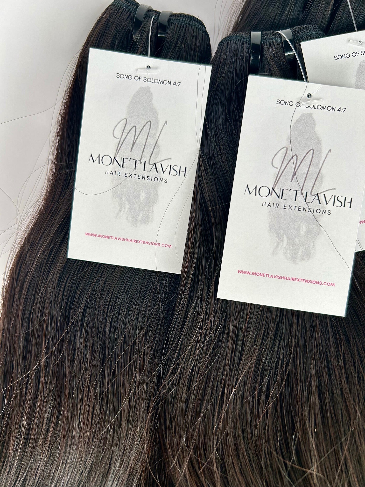 Our Mone’t Lavish Straight Vietnamese extensions—where heavenly elegance meets timeless luxury—offers soft refinement with its naturally sleek texture, crafted from 100% RAW, single-donor hair sourced exclusively from Vietnam. Each bundle is full from root to tip, delivering purity, strength, and enduring quality you can assure. These extensions can be styled bone-straight, curled, or colored while maintaining their luxurious feel and longevity.